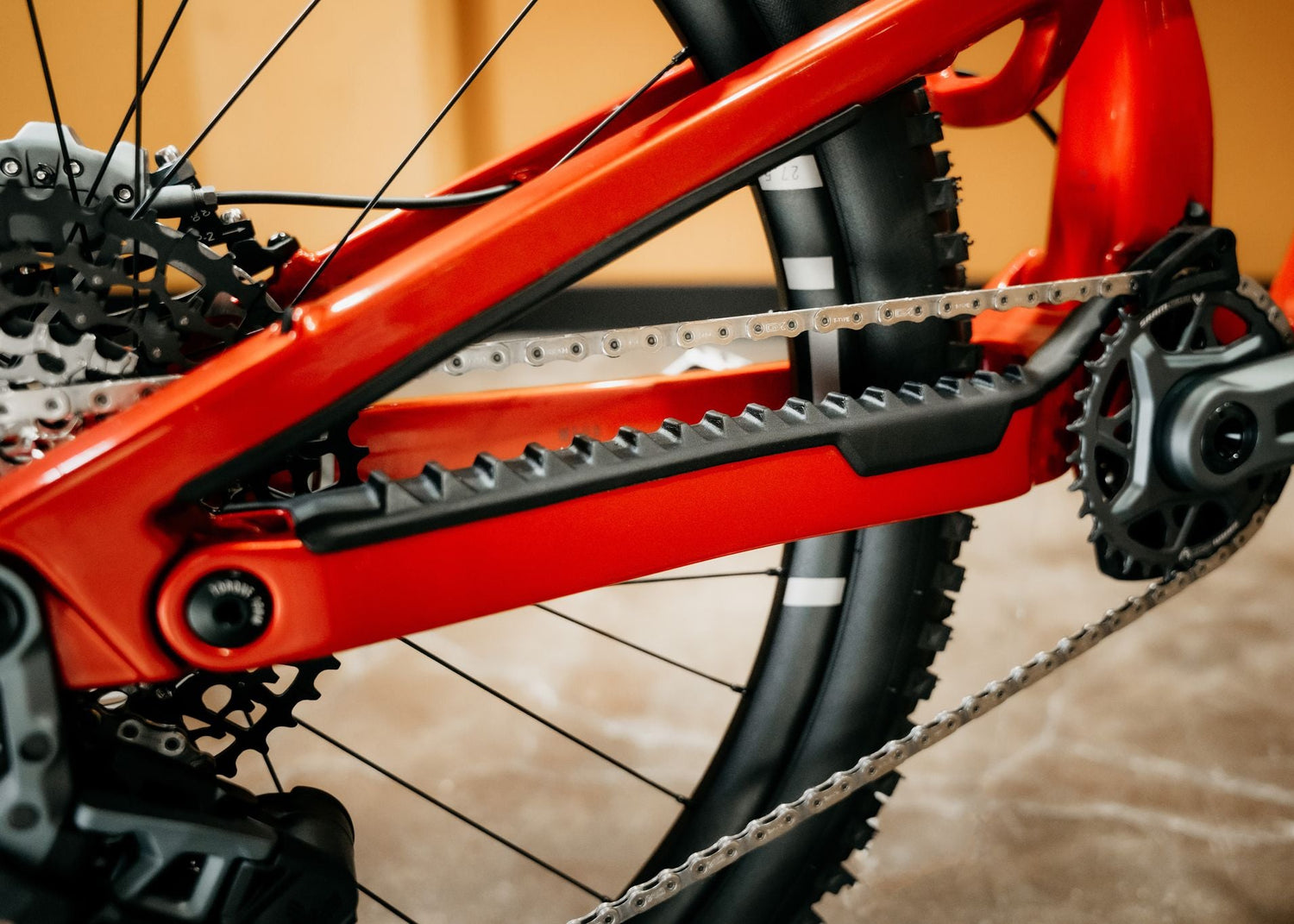 The Mega Carbon uses Nukeproof’s refined Horst-link system to balance sensitivity, mid-stroke support, and progression. Anti-squat is tuned for efficient pedalling, while size-specific seat angles maintain an effective climbing position across all frame sizes.