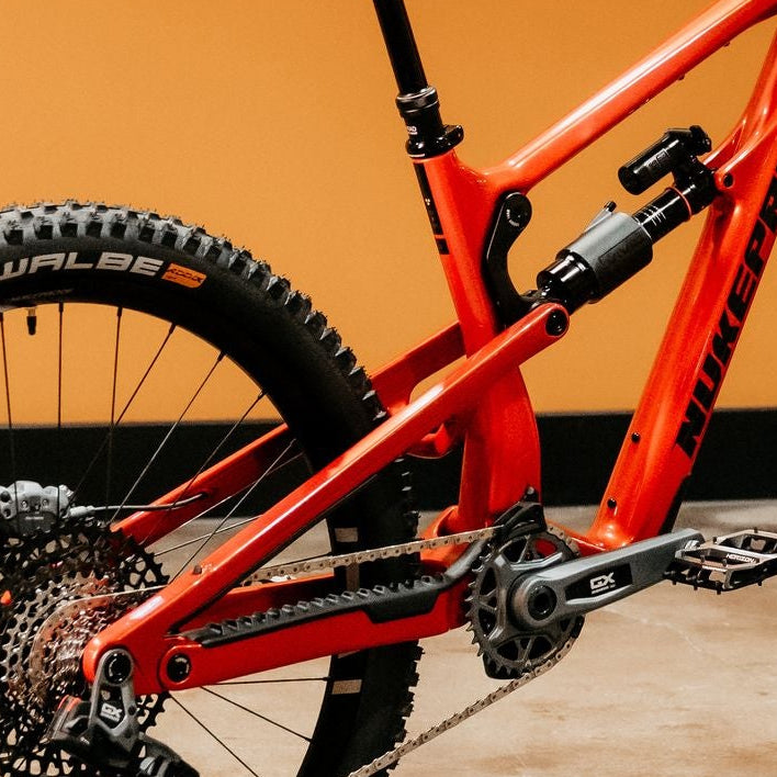 With Nukeproof’s latest Horst-link suspension system, the Mega Carbon offers increased small-bump sensitivity, stable mid-stroke support, and a progressive end-stroke for confident big-hit control. Anti-squat is tuned for efficient pedalling without compromising grip or active feel on technical climbs.
