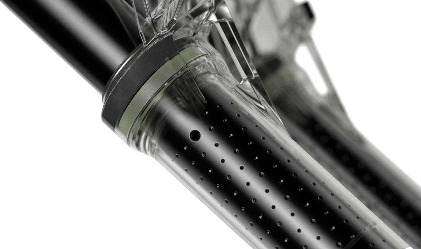 Strategically placed breather holes in the stanchions allow for the lower leg air volume to increase as the fork goes through its travel. A small feature that transforms what was previously uncontrollable speed-sensitive progression into linear predictability for riders.