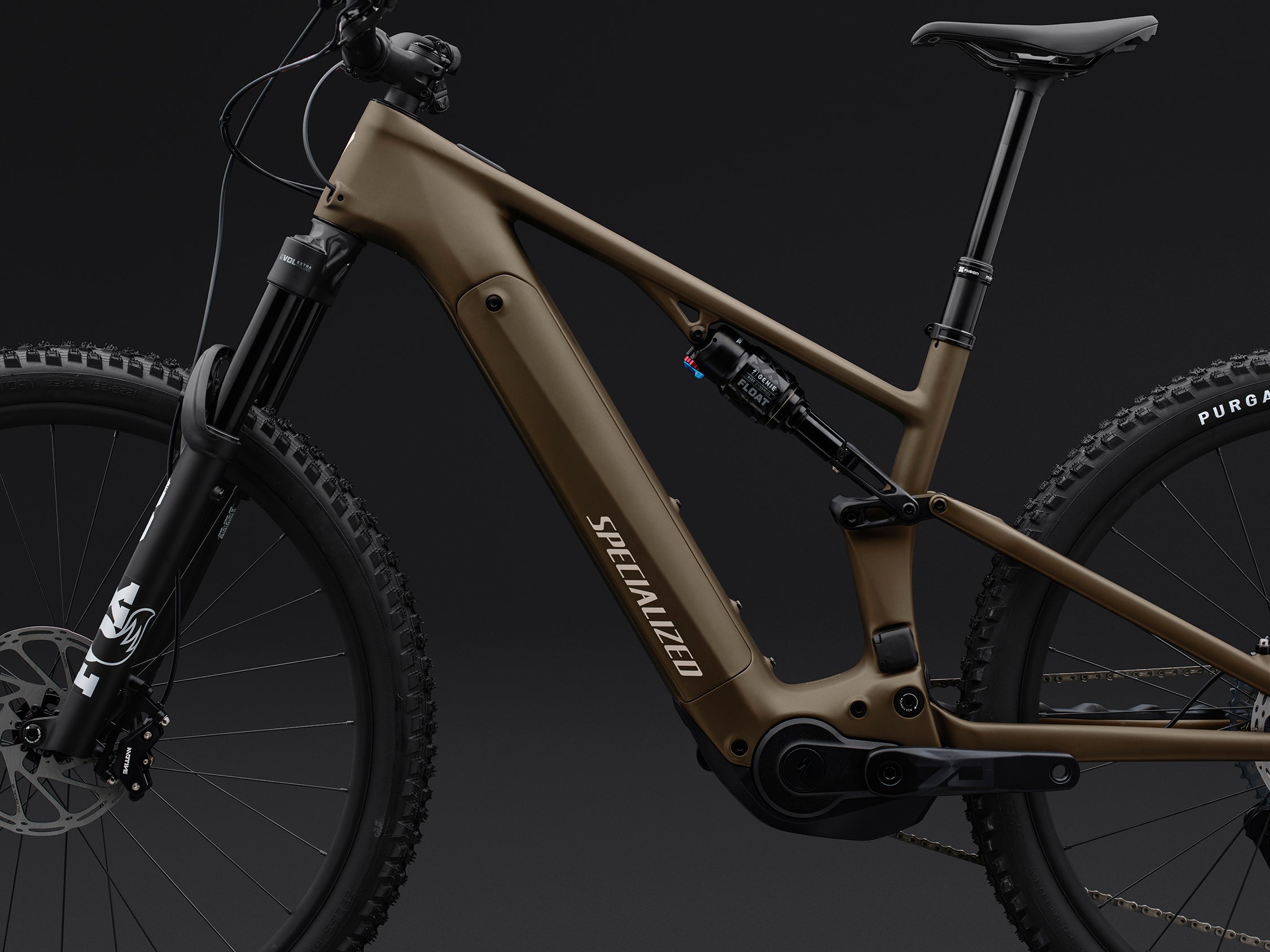 You still get the tight, responsive 140mm front and 130mm rear travel platform. You still get the full-power Specialized 3.1 motor and 840Wh battery. You still get the same FACT 11m carbon frame as the Expert and S-Works models.